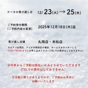 ※ご予約は、店頭またはオンラインショップからお願いいたします